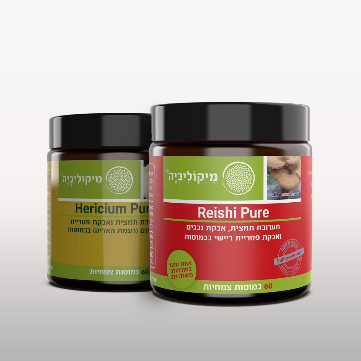 • היריסיום  – 60 כמוסות – פטריית רעמת האריה, הידועה בתמיכתה במיקוד, בחדות המחשבה, בזיכרון ובתחושת בהירות כללית.